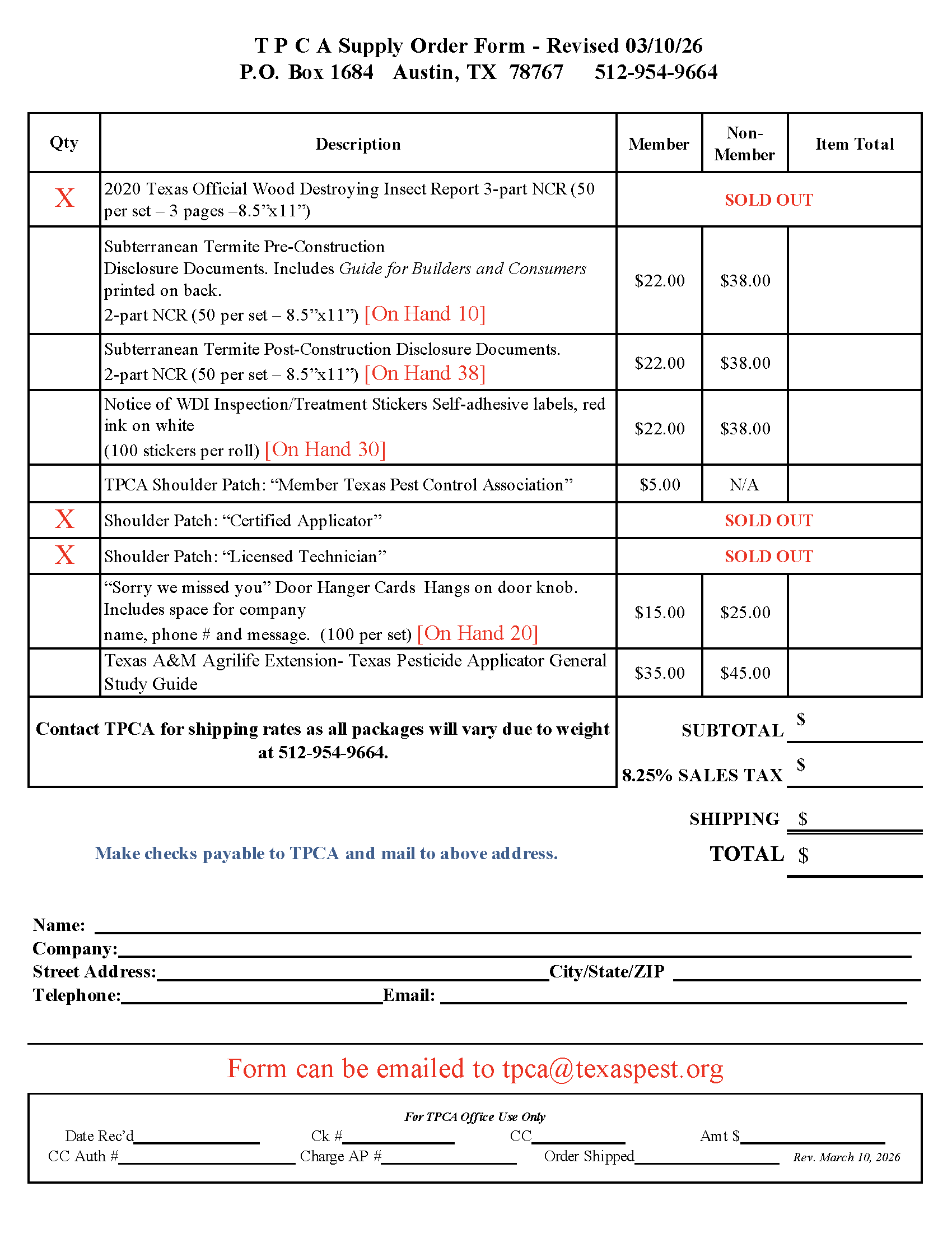 Order your supplies from TPCA today!